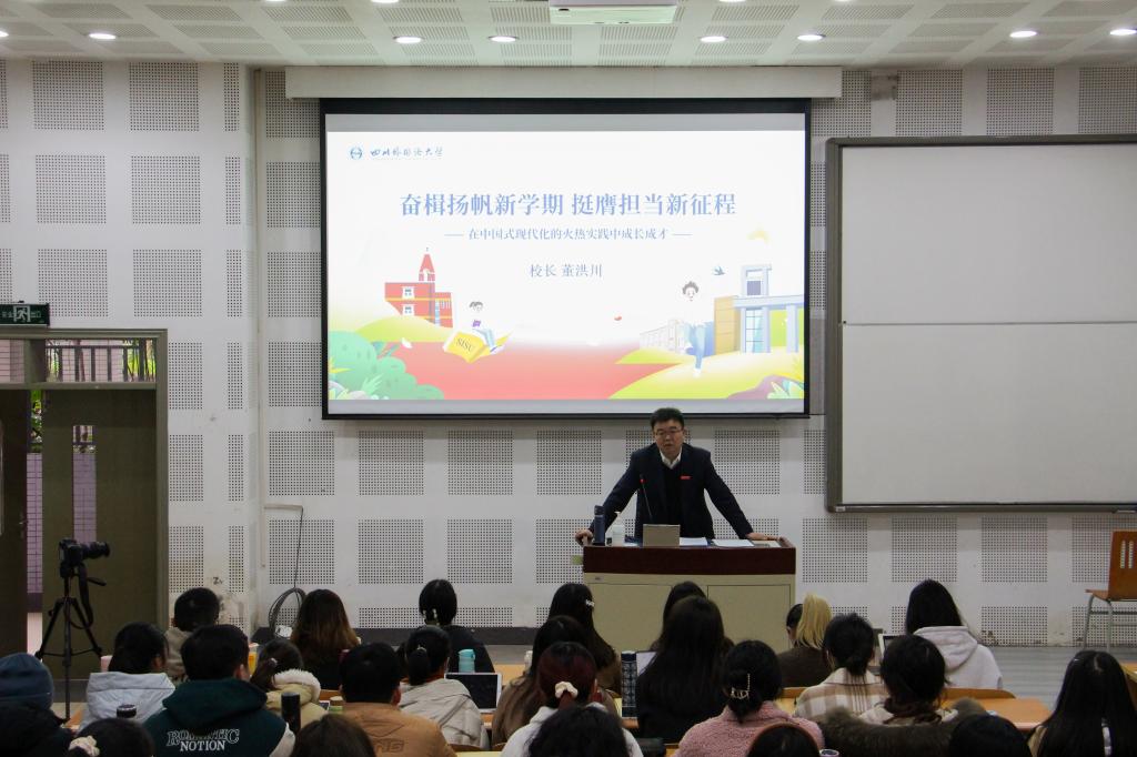 “中国式现代化”有什么样深刻的内涵?“现代化新重庆”的背景下川外面临怎样的重大机遇?2月22日上午,党委书记邹渝、校长董洪川以“奋楫扬帆新学期 挺膺担当新征程——在中国式现代化的火热实践中成长成才”为题,分别为我校本科生和研究生上了一堂内涵丰富、启示深远的开学思政第一课。