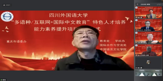 立足后疫情时代,着力培养多语种国际中文教育领域优秀人才。11月28日晚19时,四川外国语大学“多语种+国际中文教育”“互联网+国际中文教育”特色人才能力素养提升项目启动仪式在线上顺利举行。此次活动采用腾讯会议形式线上进行。此次项目班涉及三个省级的学科专业平台项目:重庆市新文科建设高校项目、重庆市国际化特色高校项目、重庆市研究生联合培养基地项目,四川外国语大学中国语言文化学院是培养主体。