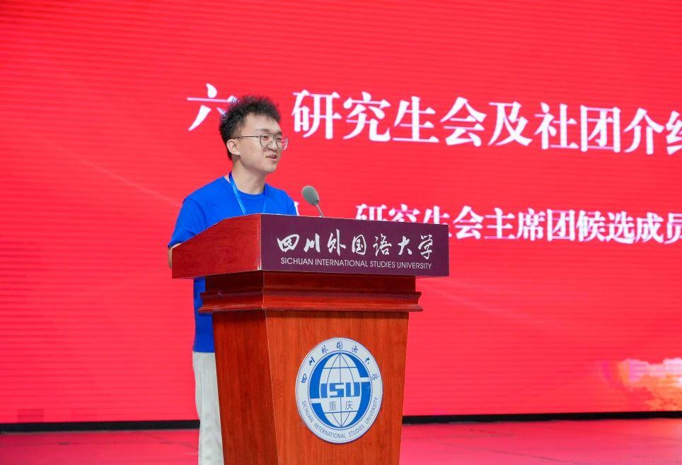 最后,校研究生会主席团候选成员冀鑫源、唐雪、杨智杰作研究生会及社团介绍,他们为同学们介绍了研究生会各部门的职能以及承担的工作,使新生们对研究生会有了更为全面的认识。