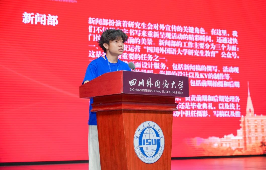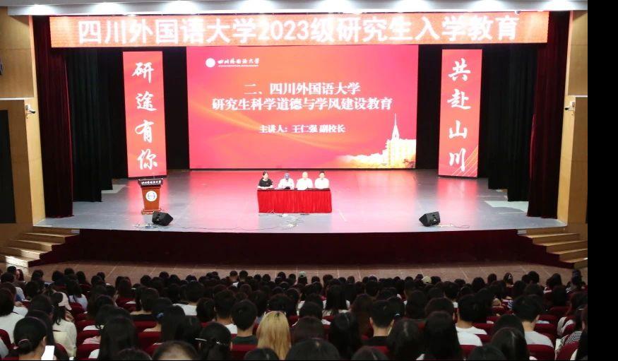 9月15日,四川外国语大学2023级研究生新生入学教育系列活动顺利举行。本次活动由研究生院院长胡安江、副院长陈明志主持,王仁强副校长出席并作报告,全体2023级博士硕士研究生、全体研究生辅导员参会。