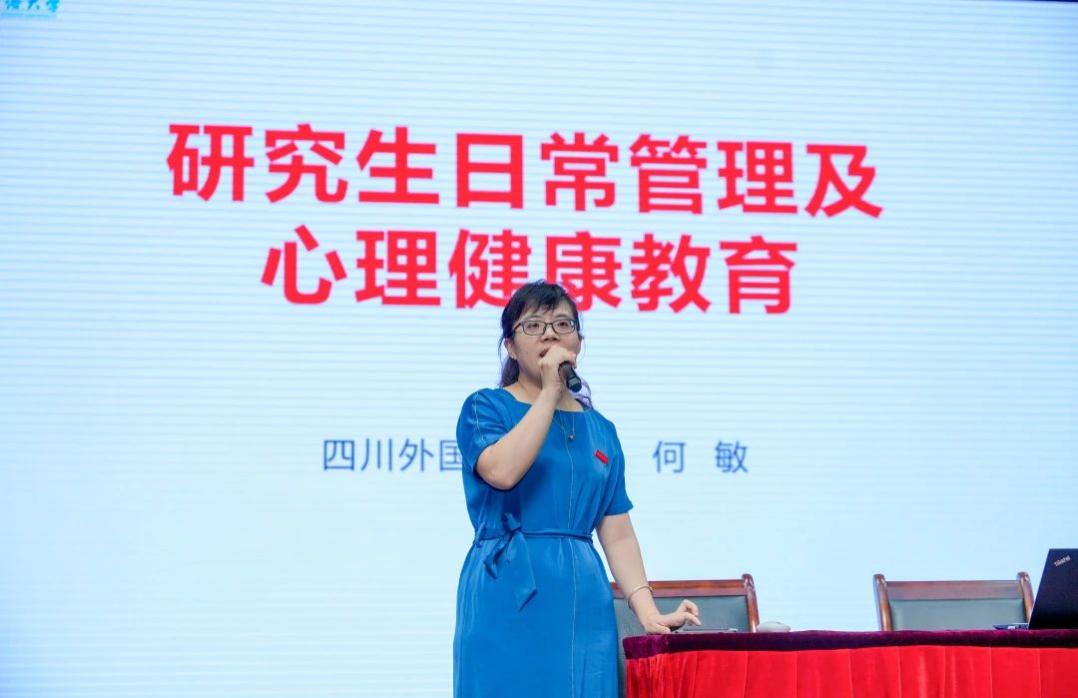 为了学生们的心理健康发展,研究生院邀请了学生处副处长、学工部副部长何敏老师为大家作研究生日常管理及心理健康教育的宣讲,以增强同学们的心理调控能力。她详细介绍了心理健康的核心内容、目标和性质,并强调了心理健康的重要性,因为健康的一半就是心理健康。最后,何敏老师介绍了学校为同学们提供的多种心理健康辅导,以更好地促进同学们的身心发展。