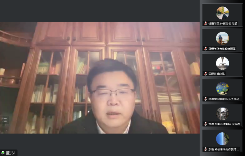 东方语言文化学院、商务英语学院、中国语言文化学院、国际工商管理学院四个学院就校际合作交流项目、外教聘用、中外合作办学项目、中国文化走出去、国际学生培养等方面的工作进行了成果汇报和经验分享,并对学校国际合作与交流工作提出改进意见。随后,国际关系学院、俄语学院等在互动交流环节就国际化人才培养、外教聘用、国际学生培养、国际科研合作等进行热烈讨论。