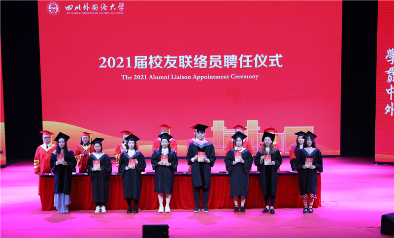 校友是学校发展的坚实基础,也是学校最宝贵的财富。为了更好地联络、凝聚和服务校友,加强校友工作的建设,典礼上还举行了2021届校友联络员聘任仪式,2021届校友联络员代表上台领取聘书。