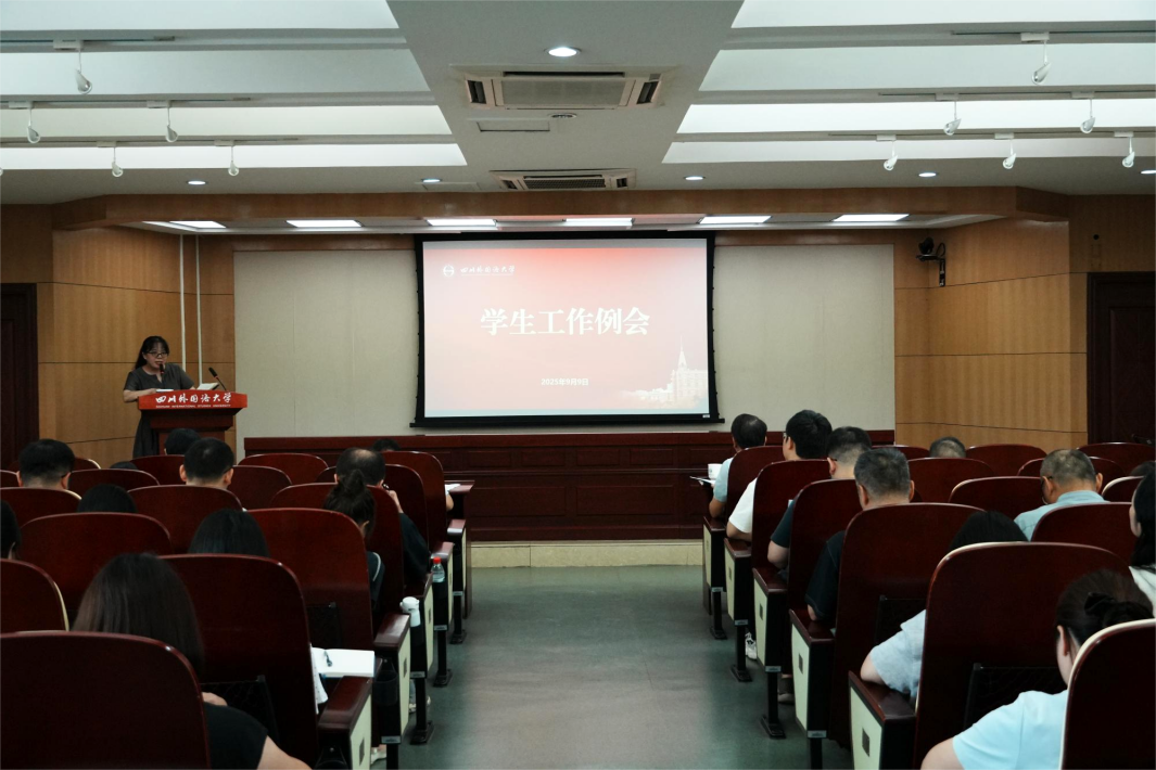 9月9日,我校在立德楼A609会议室召开新学期学生工作例会,党委常委、副校长卢波,各学院党总支书记、副书记和全体专兼职辅导员、班主任参加会议。会议由党委学生工作部副部长何敏主持。