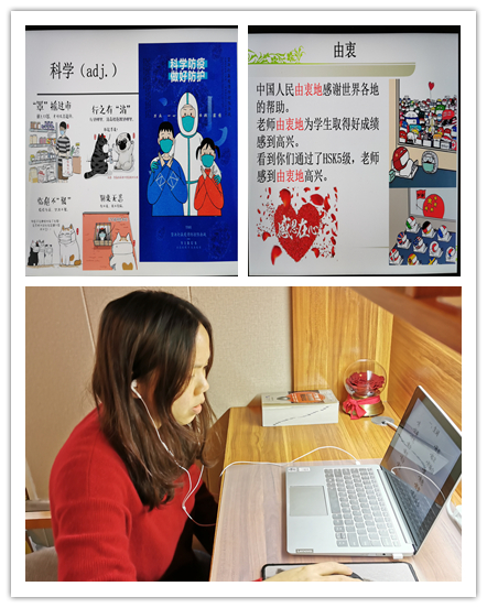 网线的另一端,是身在世界各地的留学生们,在线学习对于他们而言,同样是陌生的。来自日本的小田真理子,假期回国后开始了在国内的工作。在得知学校开展线上教学后,她既因可以继续学习汉语而兴奋,又因不熟悉网络操作而焦虑。在中国朋友的帮助下,她开通了微信账号;在老师们的帮助下,她花了一周的时间熟练掌握了教学平台的各种操作。要兼顾工作和学习,她制定了详细的学习计划,将每一天都安排得满满当当——早上六点准时起床,在线学习汉语课程;学习结束后赶赴公司工作;下班后复习、完成作业并预习第二天的课程内容。