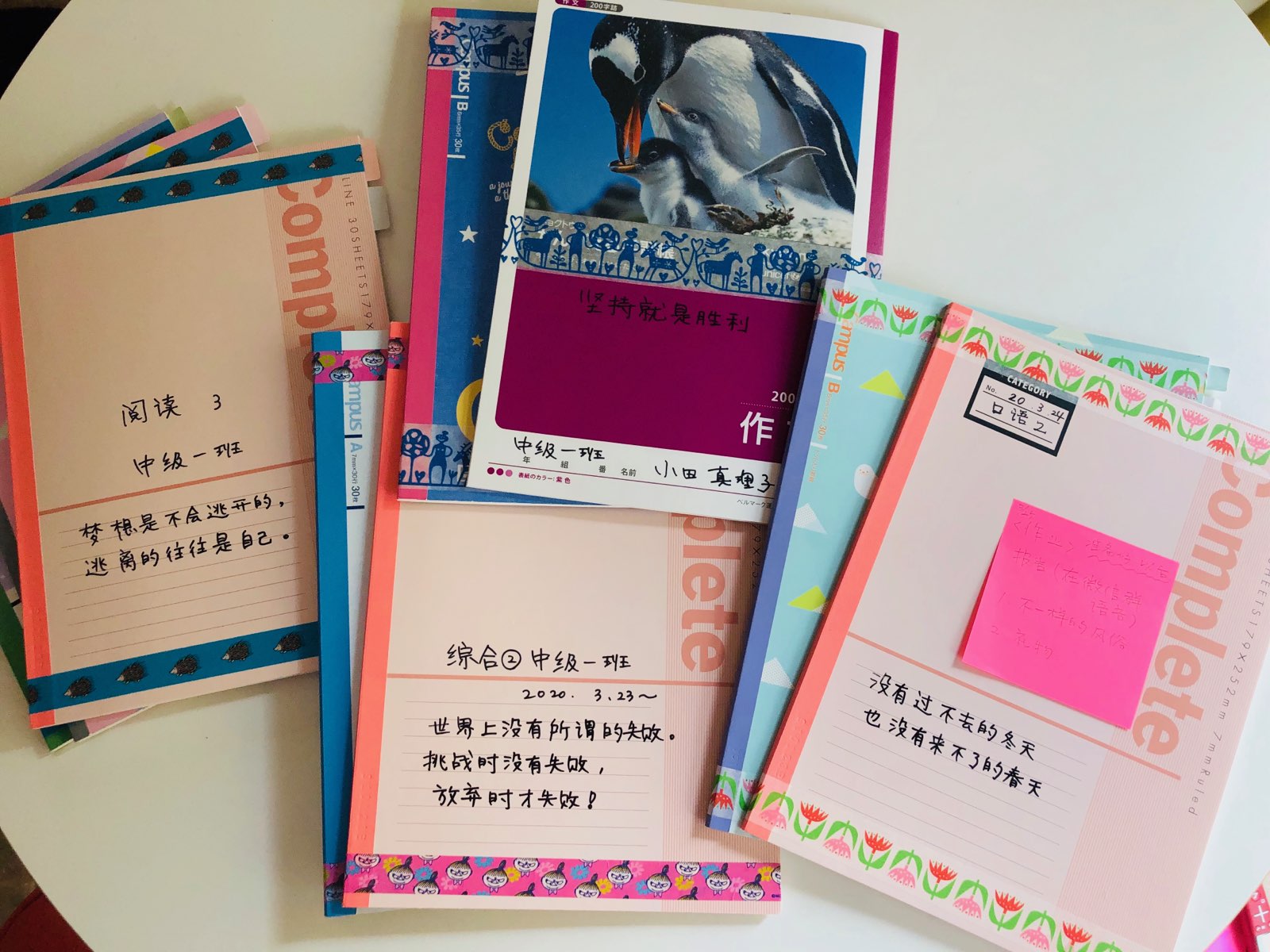 手机屏幕太小,阅读文字吃力,是小田真理子在线学习时遇到的最大的困难。她只能每天用一个多小时将手机里的课程内容抄写到笔记本上进行阅读。学习口语时,因为没有在社交软件上发语音的习惯,小田真理子羞于开口,但在老师的指导和鼓励下,她逐渐克服了困难,利用微信群完成了口语作业,并得到了老师的称赞。小田真理子坦言,兼顾工作与学习,的确很累,也曾想过放弃,但她始终记得学习过的“坚持就是胜利”,这是她学习汉语的动力。与其等待奇迹,不如豁出命来努力,她以这句话来勉励自己。
