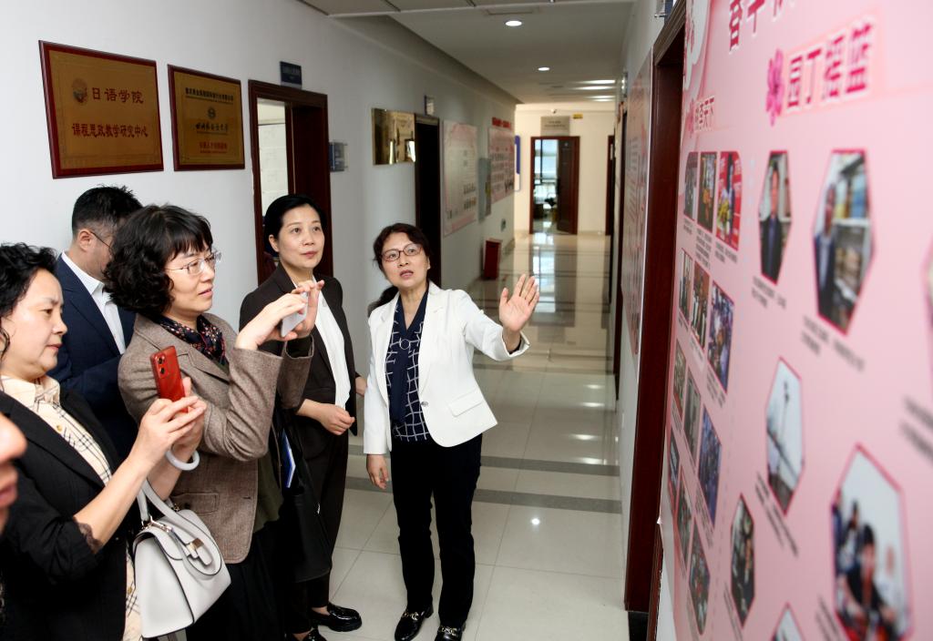 调研期间,王雯一行还来到日语学院,了解学院人才培养、学术交流、国际合作等情况,听取师生关于推动中外人文交流的意见建议。