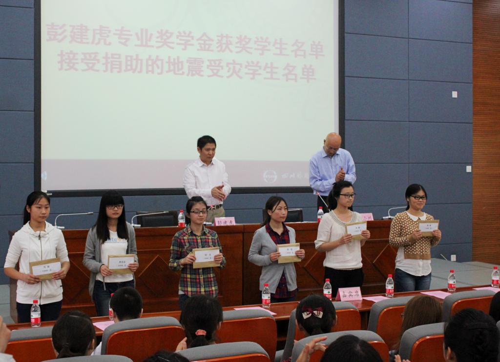 彭建虎为川外“建虎奖学金”获得者颁发奖学金