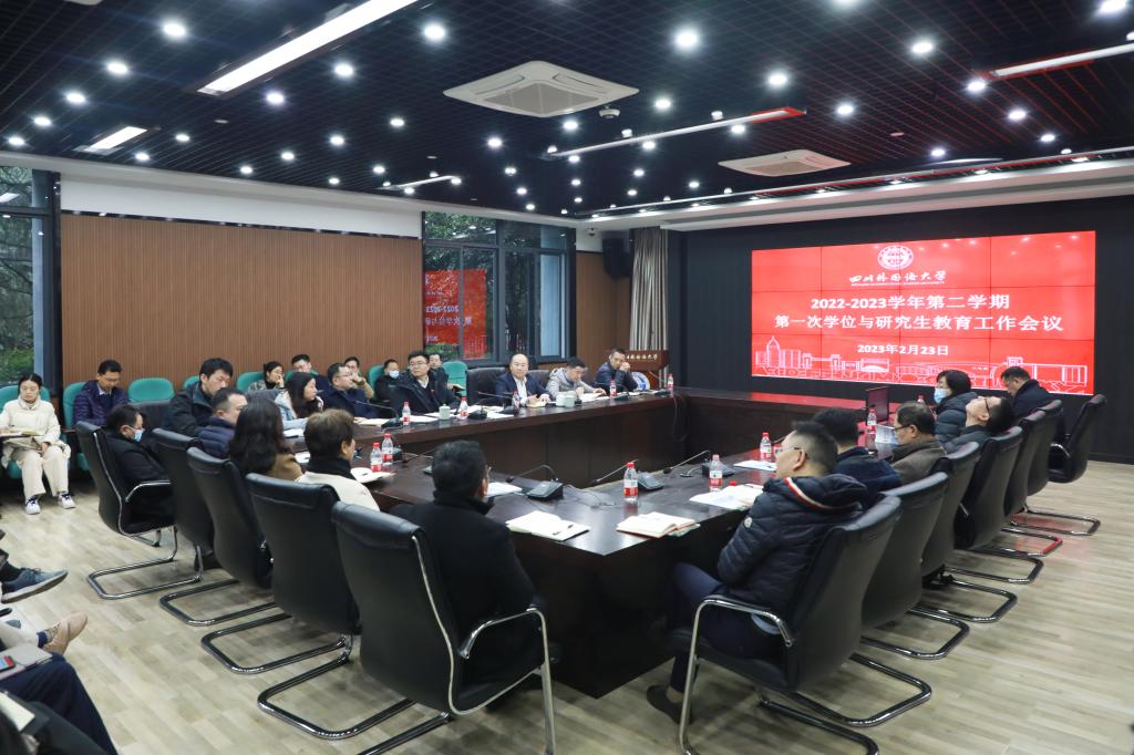 2月23日下午,2022-2023学年第二学期学位与研究生教育工作第一次会议在立德楼C117召开。校长董洪川、副校长王仁强、研究生教育督导成员、各学院主要负责人、分管研究生教学副院长及教学秘书、有关职能及教辅部门负责人参加会议。王仁强主持会议。