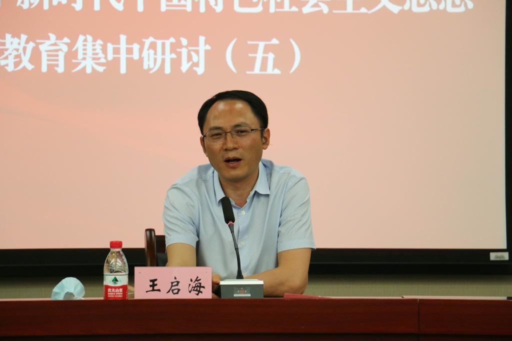 最后,市委巡回指导十六组副组长,重庆红岩联线管理中心党委委员、副主任王启海对主题教育读书班作指导。他认为,川外主题教育读书班组织谋划部署得好,学思用结合得好,定位、导向把握得好。他对川外主题教育提出两点建议:一是继续抓好理论武装,继续真正做到读原著学原文;二是始终坚持问题导向,通过主题教育推动实践推动工作。王启海强调,打造红岩先锋变革性组织的核心是能力建设,要建设学习型组织、开放型组织、创新型组织、服务型组织和效能型组织,通过红岩先锋变革性组织的统领,把各级党组织打造得坚强有力。