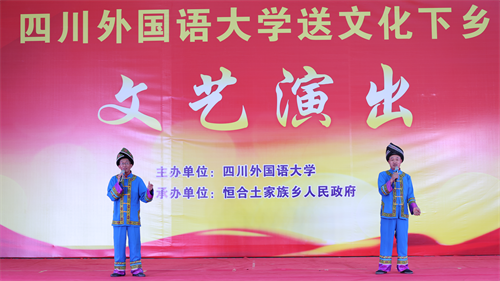 恒合乡民族中心小学邹平老师说道:“今天晚上川外的同学们给我们带来了具有国际范的节目,我们恒合土家儿女呈现了具有乡土文化气息的节目,这种国际范和本土文化的结合,演绎得非常好。特别感谢川外的师生。”
