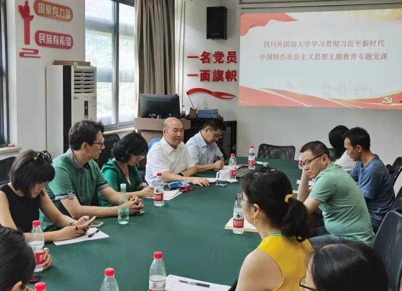 王仁强结合自身在川外求学和工作的经历回顾了川外的发展历程,指出人才是助推学校高质量发展的核心力量。学校高度重视教师队伍建设,作为教师我们也要不断转变观念,在新文科和国际化背景下突破认知、转变观念、建构量子思维。我们要有仁爱之心,不仅要“教书”,更要“育人”,“看好”学生,帮助他们建构专业知识体系,培养积极心理品质。王仁强还希望商务英语学院教工第二党支部的党员同志们发挥科研优势,打造科研先锋型组织。王仁强强调,主题教育学习是一个长期的过程,我们要结合学校学院发展、结合自身实际,务实学习、主动思考、优化方法,做到入脑入心,做到知行合一。