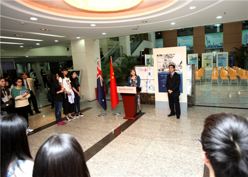 4月18日下午,澳大利亚公使馆展览活动开幕式在西区图书馆一楼大厅举行。澳大利亚驻成都总领事馆总领事郭南希女士、重庆事务官员黄翎啁女士,我校校长李克勇、副校长乐勇,国际合作与交流处副处长陈功,国际关系学院总支书记刘忠政,国际教育学院院长曾传芳等出席本次开幕式。