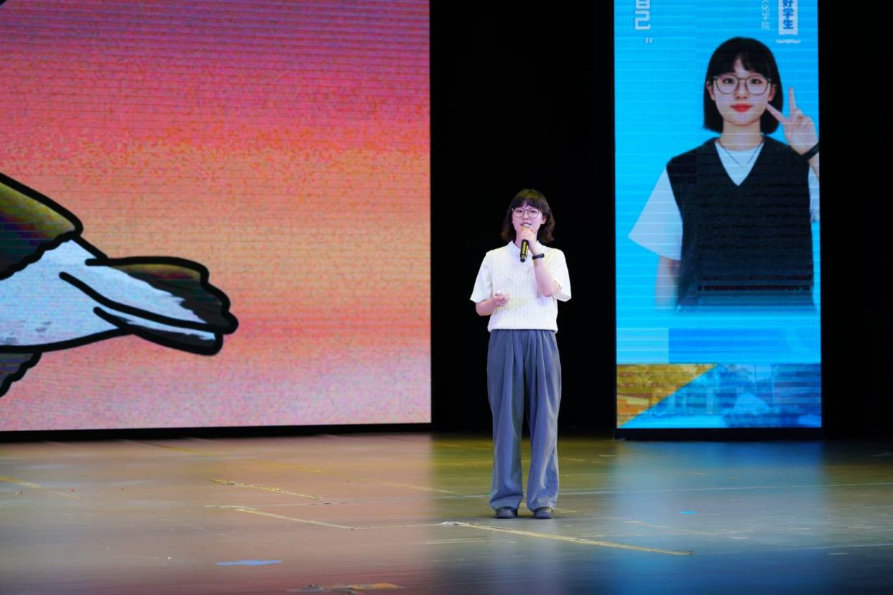 重庆市2023年三好学生获得者代表贾一凡同学带来以《大学之大,大在何处》为题的分享,贾一凡同学从“大学之大,大在何处”这一问题出发,引发大家思考,并讲述了自己关于“大学之大,大在自由与包容、大在视野与格局、大在自我成长与发展”的故事。