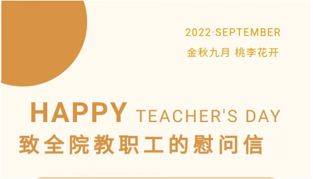 在党的二十大召开前夕,为深入贯彻落实习近平总书记关于教育的重要论述和全国教育大会精神,热烈庆祝第38个教师节,倡导全社会尊师重教,大力弘扬优秀尊师文化,引导大家感念师恩、礼敬教师,努力营造浓厚的节日氛围,学校各二级单位纷纷开展各种类型的线上和线下“迎接党的二十大,培根铸魂育新人”主题活动,共祝全校教职工教师节快乐!