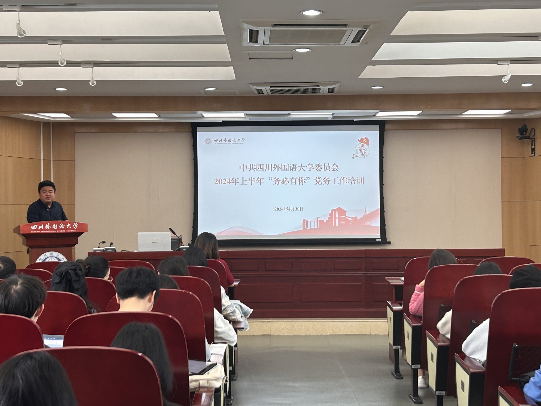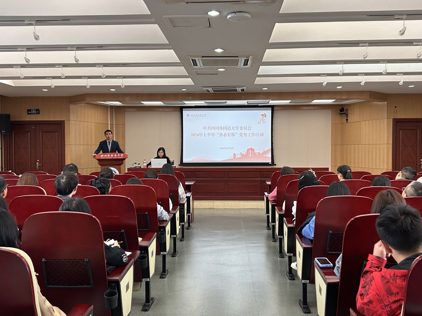 组工有约,务必有你。为进一步提升基层党务工作科学化、规范化水平,打造具备适应和引领现代化能力的新时代“红岩先锋”变革型组织,4月30日上午,四川外国语大学“务必有你”党务工作培训会在立德楼A609会议室召开。全体专职组织员、党支部书记等基层党务工作人员参加培训会。