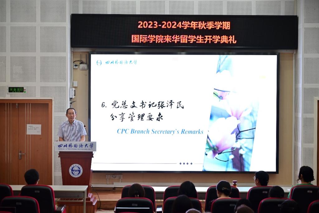 院长曾传芳在致辞中,向不远万里来到中国求学的留学生们表示热烈的欢迎和由衷的钦佩。曾院长提到,留学生们走出国门,来到异国他乡求学,是一件非常有勇气的事;敢于打破隔阂,倾听不同声音,更是体现了国际视野和开放包容的胸怀。希望留学生们学在川外,乐游重庆,知行中国,架起中外文明互鉴的桥梁,共同促进中外文化交流,为构建和谐世界作出贡献。