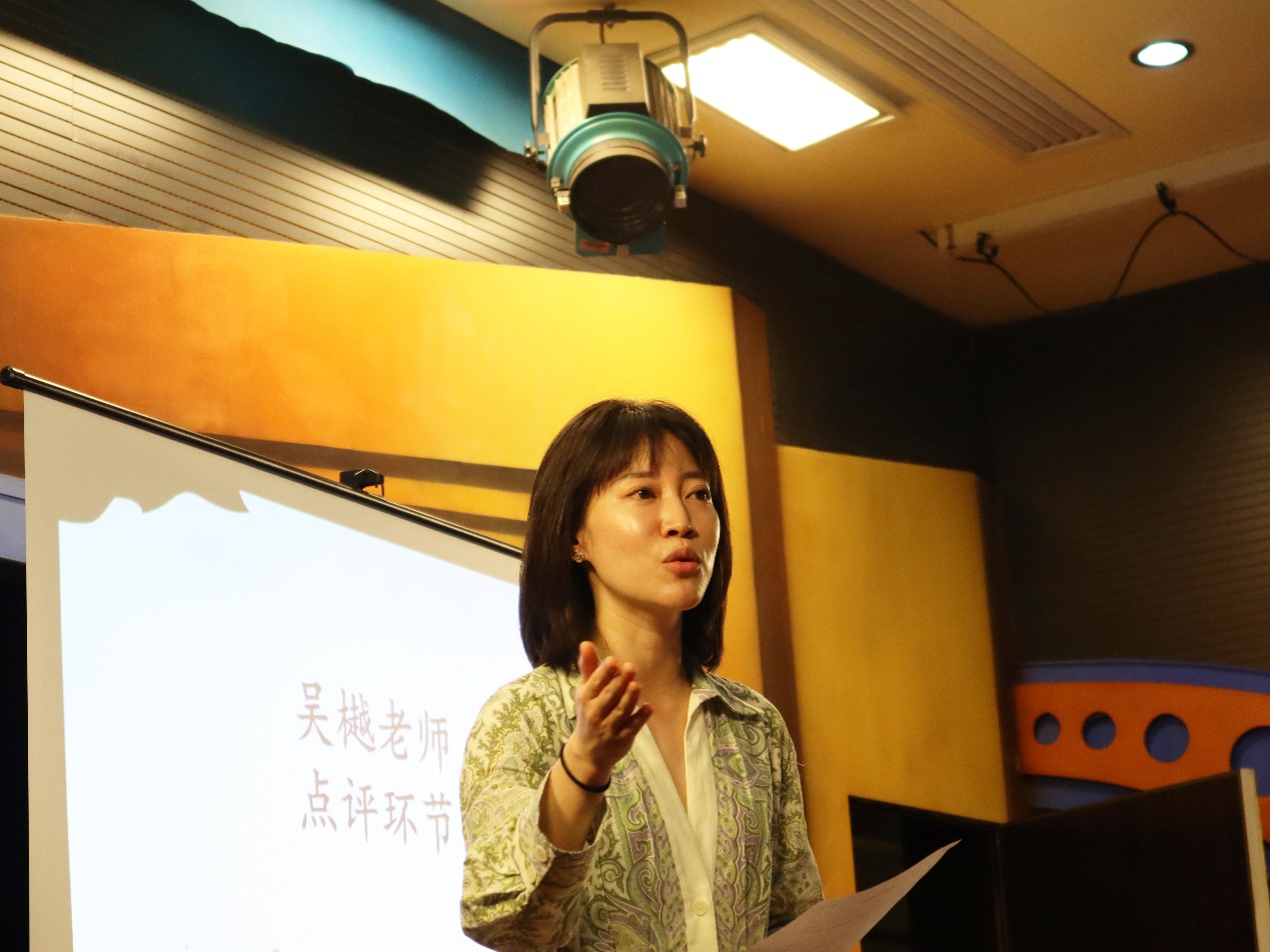 吴樾老师强调:“朗是指大声,诵则是背诵,朗诵最重要的是用情,用语言的声音形象表达文章的思想感情。除运用声音外,还要借助眼神、手势、姿态等体态语表达作品情感,引起听众的共鸣。”她和咸程举同学分别对选手们的表演进行了一一点评,他们既称赞了同学们在比赛中的精彩表现,又从专业的角度指出了朗诵的不足之处,并逐一给出详细的改进建议。