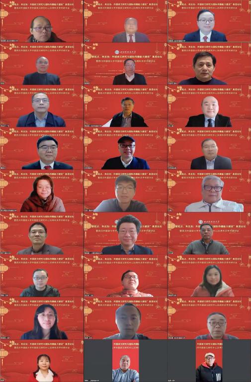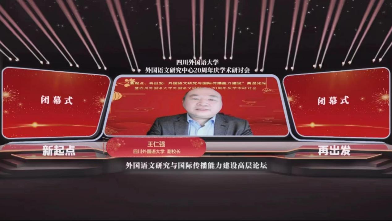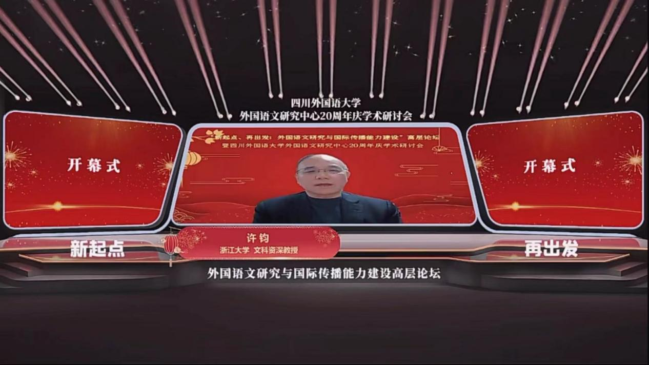 2023年1月7日,由四川外国语大学、中国英汉语比较研究会界面研究专业委员会主办,四川外国语大学外国语文研究中心、科研处和研究生院(学科建设办公室)承办,《现代外语》《外语教学》《上海交通大学学报(哲社版)》《当代外语研究》《英语研究》《外国语文》编辑部协办的“新起点、再出发”外国语文研究与国际传播能力建设高层论坛暨四川外国语大学外国语文研究中心20周年庆学术研讨会于云端如期举行。来自中国人民大学、浙江大学、南京大学、上海交通大学、北京外国语大学、上海外国语大学、广东外语外贸大学、西安外国语大学和四川外国语大学的12位专家学者和全国1.2万余人次师生参加了本次研讨会。