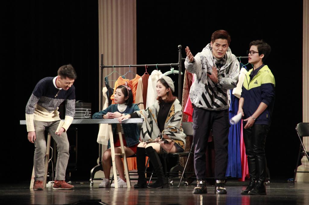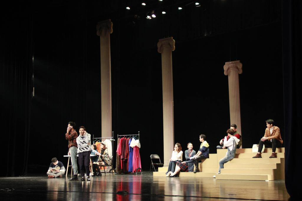 记者在现场看到,演员的服装设计和舞台设计别具匠心。“由于剧中有不少经典莎剧《罗密欧与朱丽叶》的桥段,我们不仅在剧中根据莎士比亚所在的都铎王朝的建筑风格深度还原了罗密欧与朱丽叶深夜相会的阳台、罗马柱等场景,演员们的着装也依照都铎王朝的宫廷服装进行设计,让观众能感受莎剧的魅力。”本剧编剧、商务英语学院教师曾立说。
