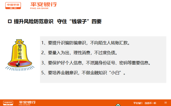 为进一步扩大反诈宣传力度,提高学生安全防骗意识,3月17日下午,国际金融与贸易学院邀请平安银行重庆分行为2019级金融学专业的同学们开展了防骗反诈知识线上讲座。本次讲座主要围绕“远离不良校园贷”“防范电信网络诈骗”“珍惜信用记录”三个方面进行。