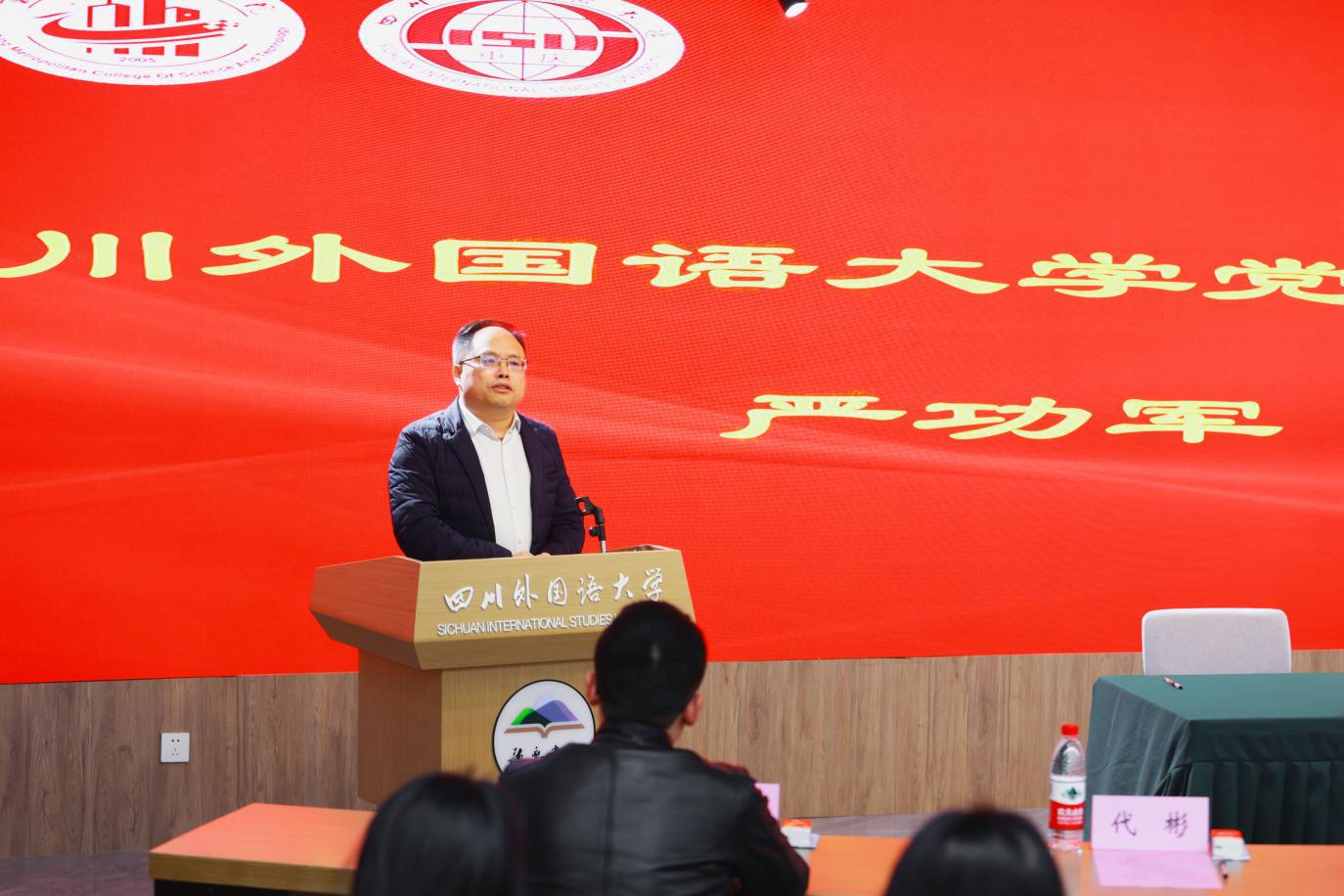 仪式最后,严功军总结讲话。他指出,数智化时代下,同学们需要提升“全球视野+中国立场”的跨文化传播能力,不仅可以深挖巴渝文化、抗战精神等地域文化富矿,还可以充分发挥外语院校优势,用国际表达讲好“重庆立体山水”“中国式现代化”等时代命题。他鼓励同学们做到“三个融合”,即专业知识与媒介素养深度融合、文化传承与技术创新有机融合、个人成长与时代需求精准融合,努力成为有国际视野、创新精神和实践能力的新时代青年!