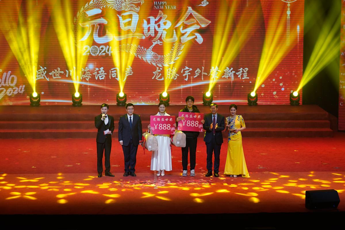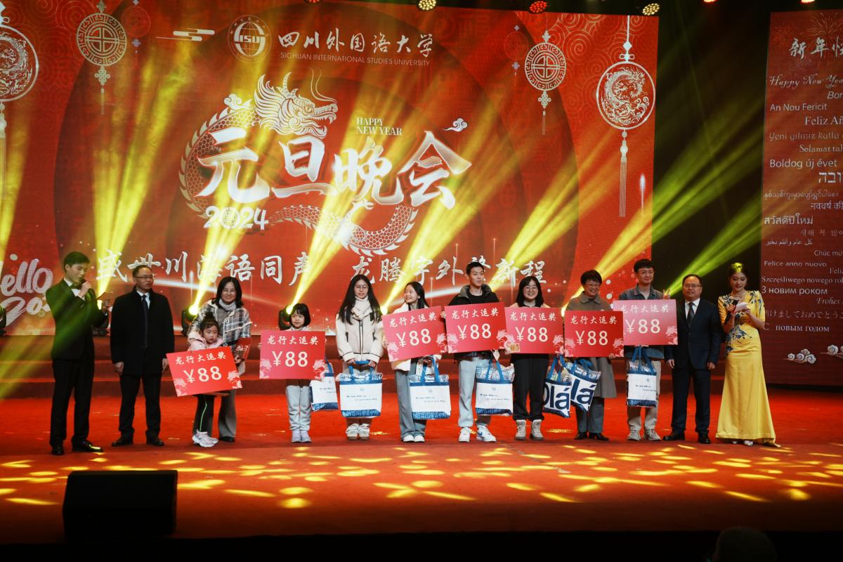 共庆新年笑语哗,晴天暖日歌乐会。2023年12月27日晚,“盛世川海语同声,龙腾宇外肇新程”四川外国语大学2024年元旦晚会在东区大礼堂举行。川外全体校领导,重庆市政协委员、重庆市侨联副主席、新加坡阿朗斯投资集团主席、川外重庆校友会会长廖洪海,川外教育乡村振兴帮扶地万州恒合乡党委副书记、乡长蒲刚与近千名师生欢庆新元肇启,共迎甲辰龙年。