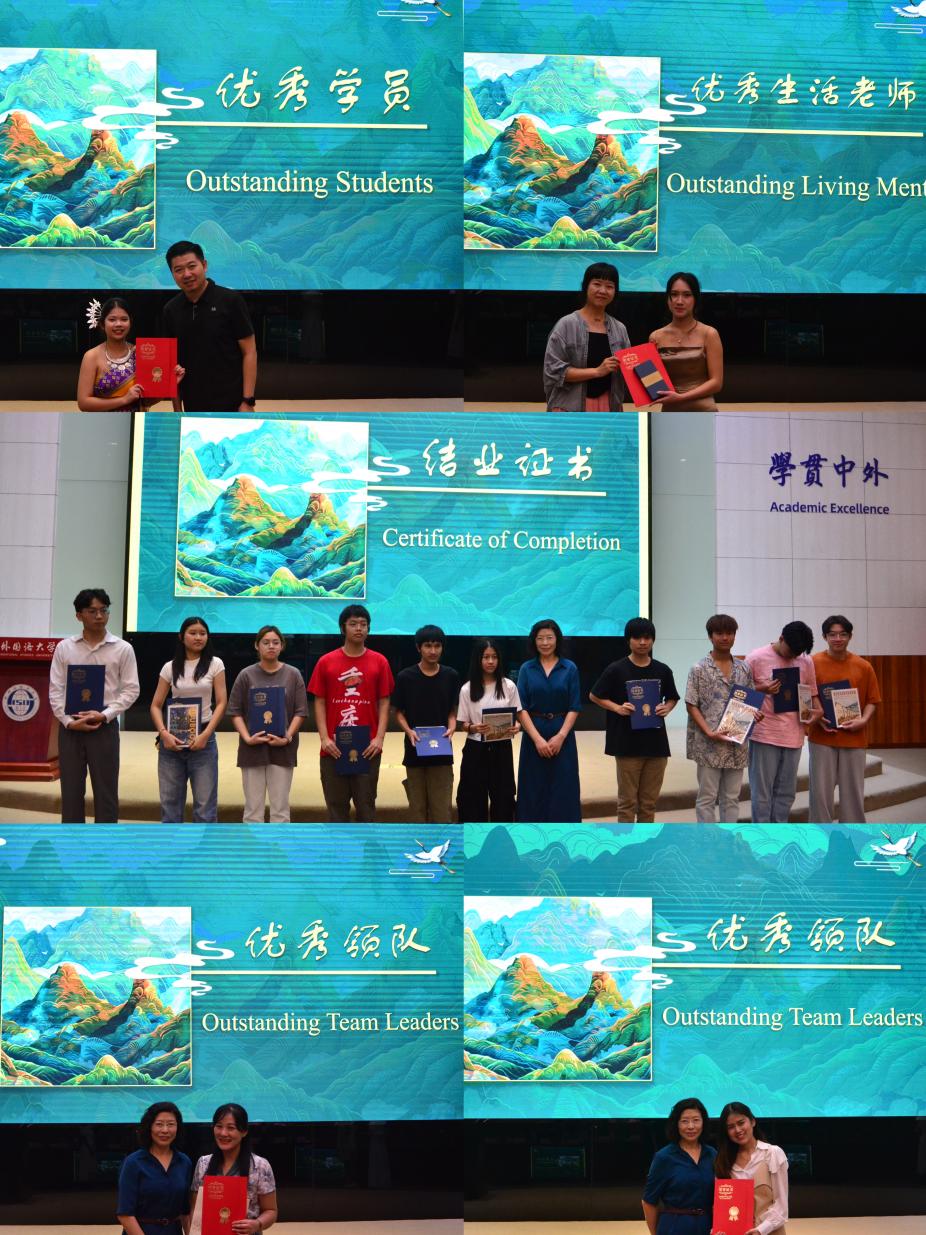 典礼上,与会中方领导为圆满完成研学的41名泰国学子逐一颁发了结业证书,并对表现突出的10名优秀学生、1名优秀生活老师及2名优秀领队进行了表彰。