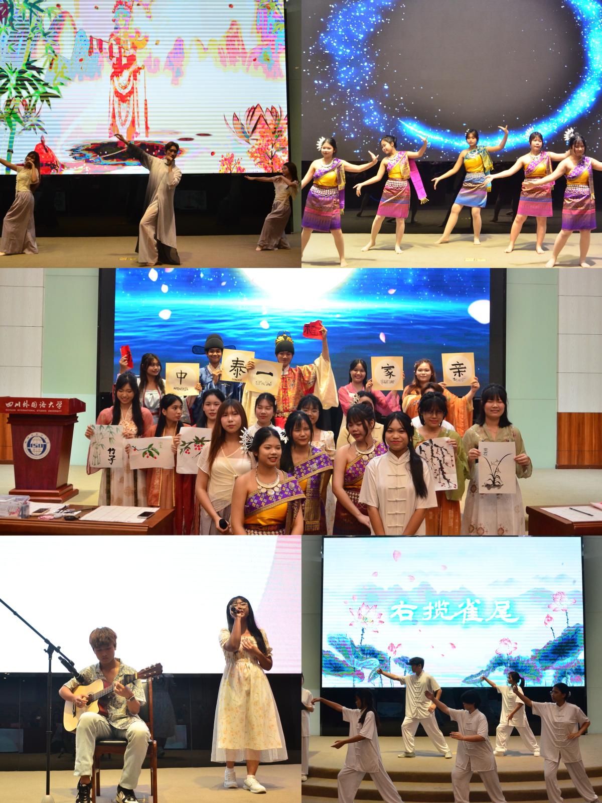 在随后的文艺汇演中,泰国学子们倾情演绎了研学期间的成果:太极拳表演刚柔相济,中泰舞蹈串烧灵动飞扬,民歌悠扬与书法挥毫相得益彰,生动展现了他们对中华文化的深刻理解与由衷热爱。