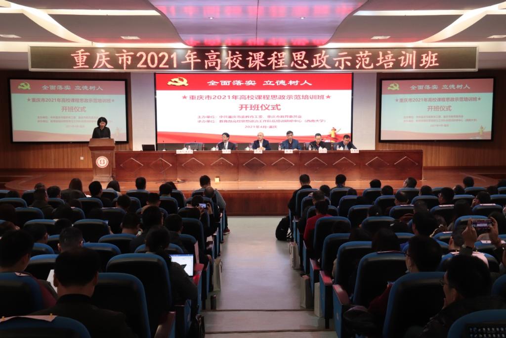 4月19日,重庆市2021年高校课程思政示范培训班在西南大学顺利举行。市委教育工委委员、市教委二级巡视员帅逊出席开班式并讲话,西南大学党委副书记潘洵出席开班式并致辞,教育部高等教育司人文社科教育处处长张庆国出席开班式并作首场专题报告。来自全市25所高校的260余位专业课程教师参加。四川外国语大学由教务处牵头,共派出来自德语学院、国际关系学院、国际法学与社会学院、翻译学院、新闻传播学院、东方语言文化学院、西方语言文化学院、国际工商管理学院和国际金融与贸易学院的10名教师参与了此次培训。