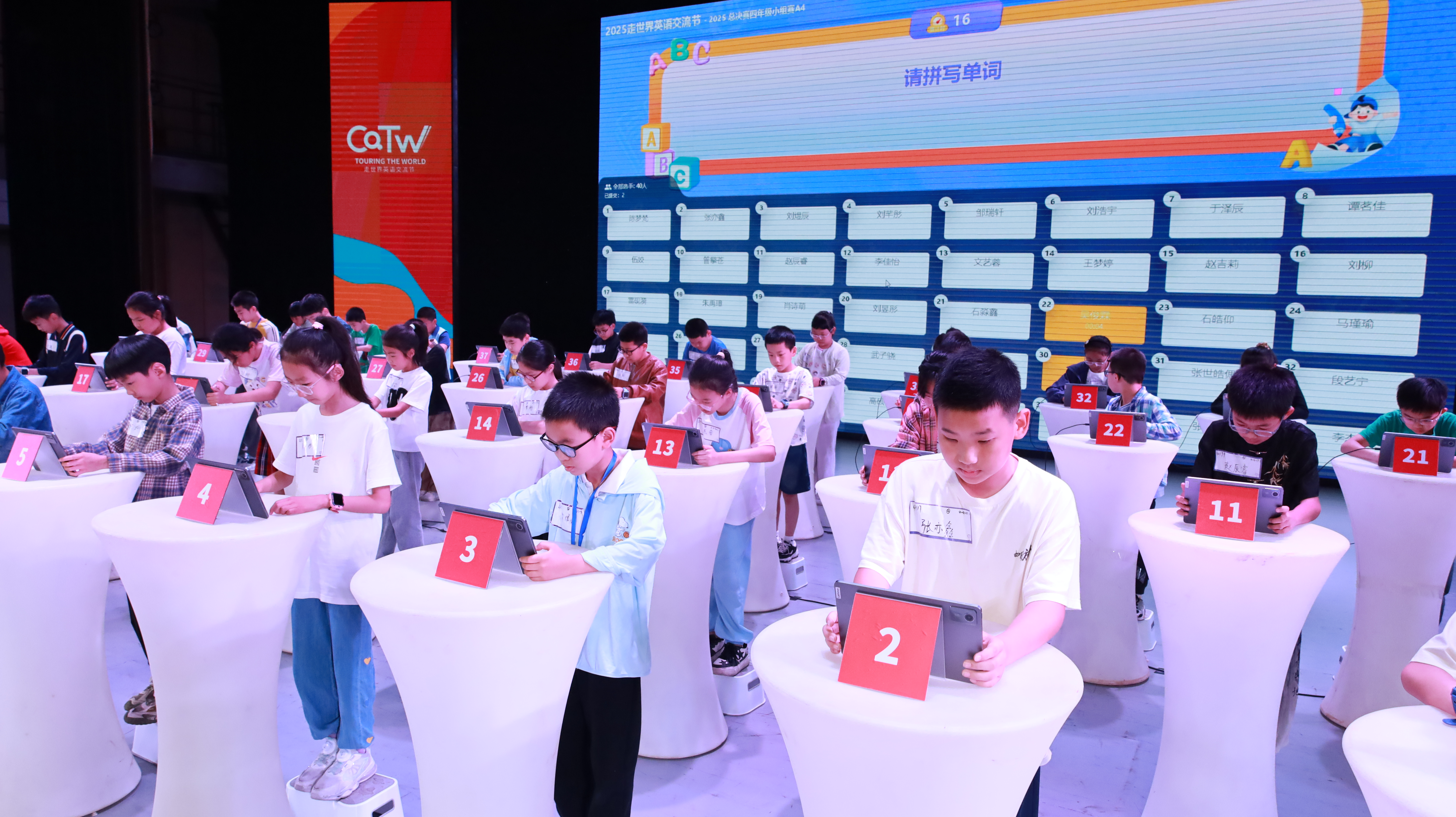 大赛由两届总冠军喻相宜同学担任主持,以“正确率优先、速度其次”为原则,设置多轮淘汰环节,全面考查选手词汇储备、拼写准确性与临场应变能力。赛场上,选手们专注应对难度逐步递增的单词挑战,观赛师生及家长掌声此起彼伏,现场洋溢着积极向上的学习氛围。