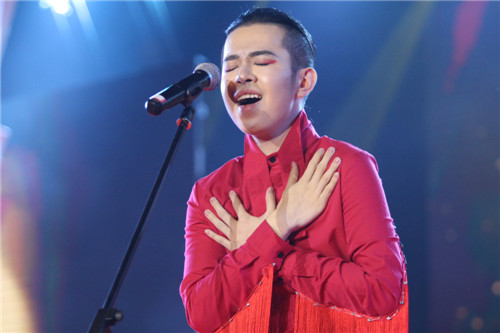 男女美声对唱《我的深情为你守候》中,工作人员推出了十周年生日大蛋糕。