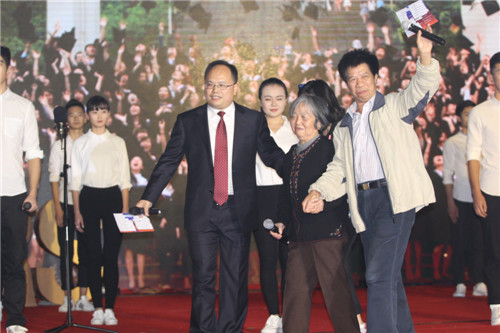 70岁的吴廷美老师,在志愿者的搀扶下,颤颤巍巍地走到舞台中央。从1995年新闻学专业申报书完成的那个冬夜开始说起,老人家深情地回忆起专业创办之初的艰难与不易。大家都被她讲的往事所打动,刚才还激情四溢的会场,一下子安静下来。当吴老师用坚定的声音说出“那个时候,我告诉他们,你们作为新闻的第一批学生,会在这间陋室里,放飞梦想,扬帆起航”时,全场掌声雷动,很多学生的眼里都闪烁着泪光