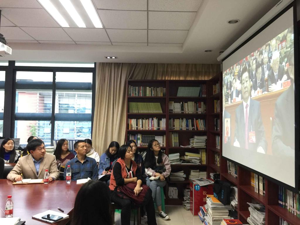 在川外各个分会场,师生们正认真收看十九大开幕会盛况