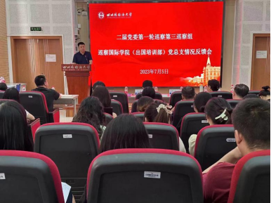 根据二届党委第一轮巡察工作部署,7月4日至5日,党委第一巡察组、第二巡察组、第三巡察组分别完成对国际法学与社会学院党总支、西方语言文化学院党总支、国际学院(出国培训部)党总支的巡察反馈工作。党委巡察工作领导小组组长、党委书记邹渝,党委巡察工作领导小组副组长、党委副书记苟朝莉,党委巡察工作领导小组成员、党委巡察办公室主任秦勇分别出席反馈会并讲话。