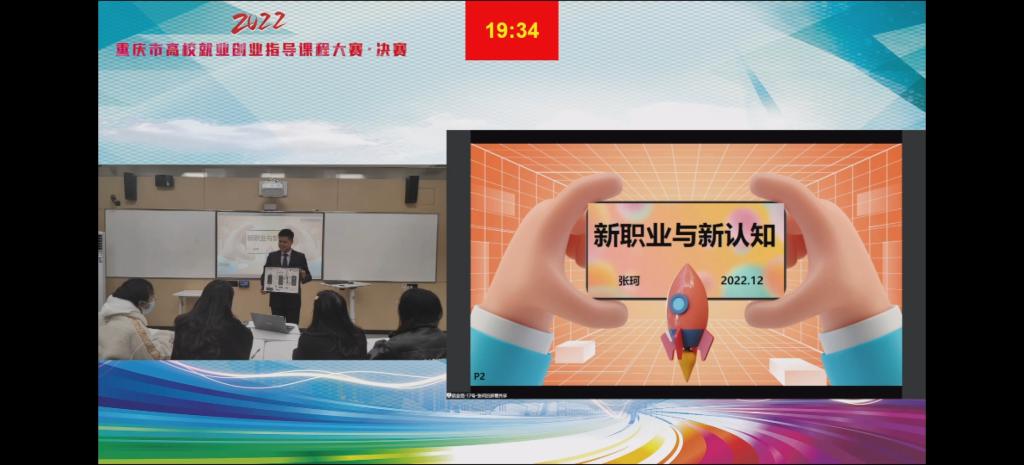 本次大赛以“展教师风采,育时代新人”为主题,旨在交流教学经验、展示教学成果、提高教学水平,决赛以“参赛选手线上比赛+专家线下集中评审”方式进行,30名晋级决赛的选手分“就业指导组”和“创业指导组”两个组别进行角逐,设线上授课(20分钟)、指导方案陈述(5分钟)、线上答辩(5分钟)三个比赛环节,围绕高校毕业生就业创业指导相关课程章节进行教学展示和PK。张珂老师授课内容新颖、丰富,紧扣育人主题,凭借扎实的理论功底和优秀的教学效果,获得评委一致好评,他将与另外4名选手一起代表重庆参加川渝总决赛。
