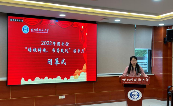 5月26日下午,四川外国语大学图书馆2022年“培根铸魂 书香致远”读书月活动闭幕式暨颁奖典礼在图书馆5楼会议室圆满举行。图书馆馆长杨俊教授、党委教师工作部部长胡登全教授、国际合作与交流处副处长朱天祥副教授、校团委曹海燕老师和获奖师生代表参加了本次闭幕式。闭幕式由图书馆研究馆员邓倩主持。