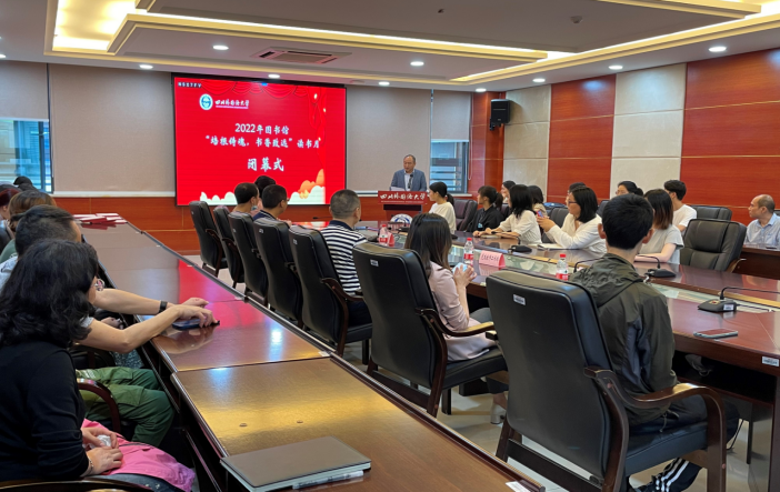 活动第二阶段是读书先进代表发言。西方语言文化学院陈英教授和中国语言文化学院石盈璐同学表达了读书的体会及收获。她们表示,把阅读变成一种习惯,一种享受,读书就是生活中的诗和远方。