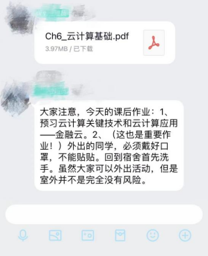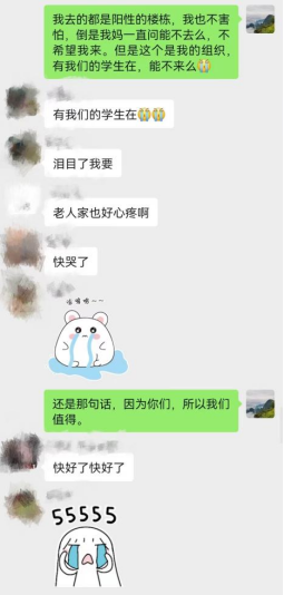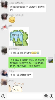 鉴于严峻的疫情防控形势,同学们只得开启线上学习的历程。在单调的封寝生活期间,支部教师线上通过线上沟通交流,向全院学生表达了关怀和安抚。他们不仅深入了解同学们的网课学习状况,并且时刻关心着同学们的身体状况以及思想状态,叮嘱大家做好防护,乐观积极。他们耐心且细心,用实际行动关爱和守护同学们,同样也收获了同学们都尊敬和爱戴。