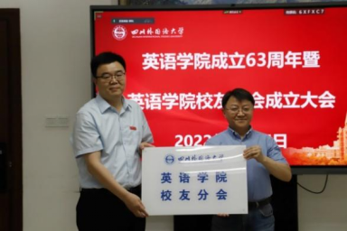 2022年5月25日下午16:00,四川外国语大学英语学院成立63周年暨英语学院校友分会成立大会在西区立德楼B307会议室举行。会议采取线上线下相结合的方式进行。