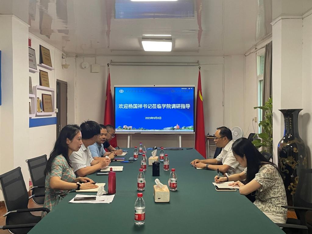 9月8日上午,学校党委常委、纪委书记、监察专员杨国祥同志一行前往国际工商管理学院调研并指导工作。院长代彬汇报了学院“学科引领、专业协同、一体两化、产教融合”的总体发展思路以及新文科建设的探索与实践;党总支书记罗先明汇报了学院党建工作的措施与成效;党总支副书记王婷汇报了打造符合新时代特征和特色校园文化的高质量学生工作体系建设举措。