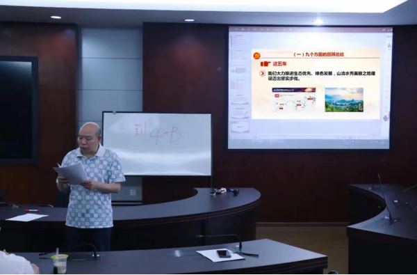 为深入学习贯彻习近平新时代中国特色社会主义思想,传达学习中国共产党重庆第六次代表大会精神,坚定拥护“两个确立”、坚决做到“两个维护”的鲜明态度,6月17日,国际金融与贸易学院党总支书记曾健主讲了题为《蓝图催人奋进征程勇毅笃行》的专题党课,全体教职工参加党课学习。