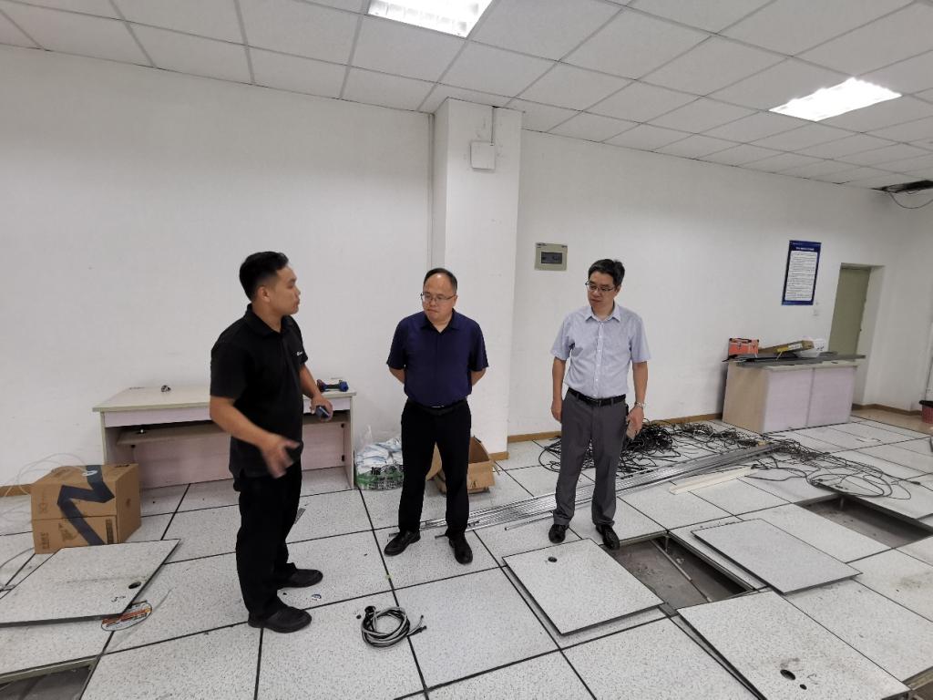 检查中严功军副校长对大家假期加班推动学校信息化建设辛苦工作表示感谢,强调要加强监督,施工要注意防暑并确保安全,要保证施工质量,如期完成建设。