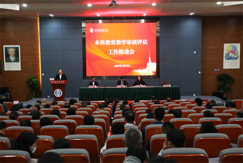 3月23日上午10点,学校在歌乐楼A栋报告厅举行本科教育教学审核评估工作推进会。学校党委书记邹渝、副校长郑白玲、副校长祝朝伟、副校长王仁强出席会议,校内全体中干、科级干部、辅导员、教学秘书及教育规划与评估研究院相关工作人员参加会议。会议由副校长王仁强主持。