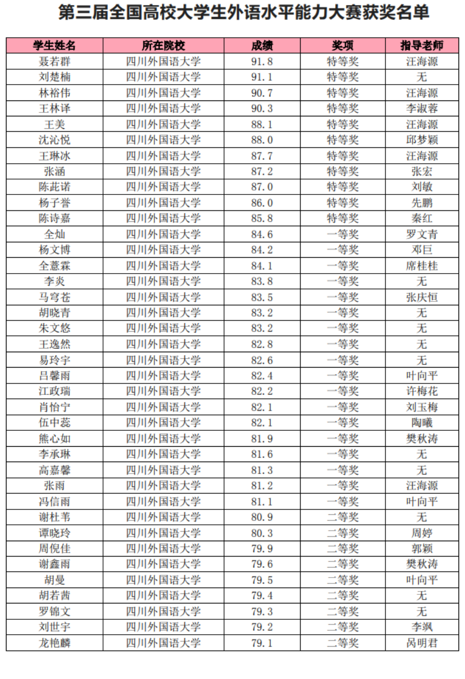 2022年5月21日上午,第三届全国高校大学生外语水平能力大赛全国决赛落幕,我校超过300名学生报名参赛,共有66名同学晋级决赛,最终有60名同学获奖,其中11名获特等奖,18名获一等奖,23名获二等奖,8名获三等奖。