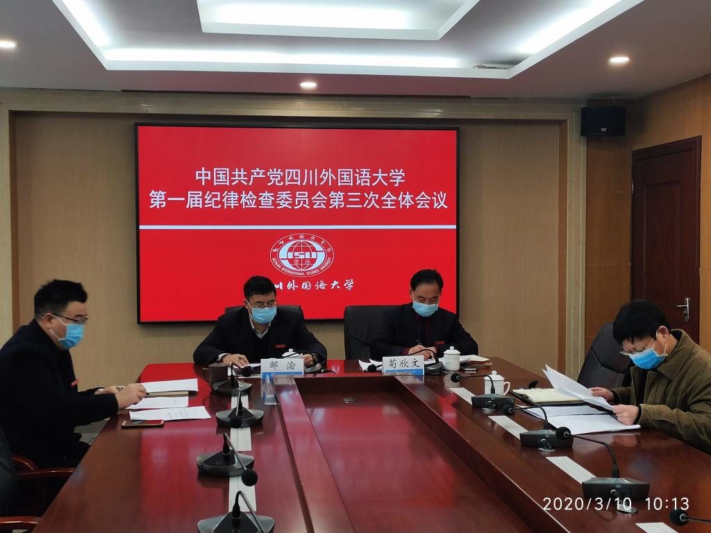 3月10日,中国共产党四川外国语大学第一届纪律检查委员会第三次全体会议召开。党委书记邹渝同志出席会议,校长董洪川同志列席会议。党委常委、纪委书记、市监委驻校监察专员苟欣文同志主持会议。