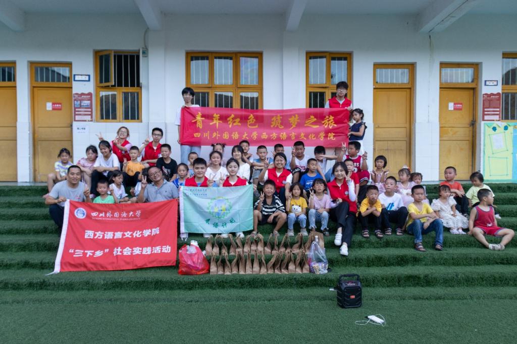 为深入学习宣传贯彻落实习近平新时代中国特色社会主义思想和习近平总书记在庆祝中国共产主义青年团成立100周年大会上的重要讲话精神,引导和帮助广大青年学生上好与现实相结合的“大思政课”,鼓励青年学生深入中国大地,了解国情民情,在社会课堂中“受教育、长才干、作贡献”,积极参与新农村建设,助力乡村振兴,2022年7月6日至7月9日,四川外国语大学西方语言文化学院党总支副书记许令仪、团总支书记李刚、辅导员李玲以及8名学生组建“青春献礼·丹心筑梦”师生社会实践团队,踏上乡村振兴实践之旅。