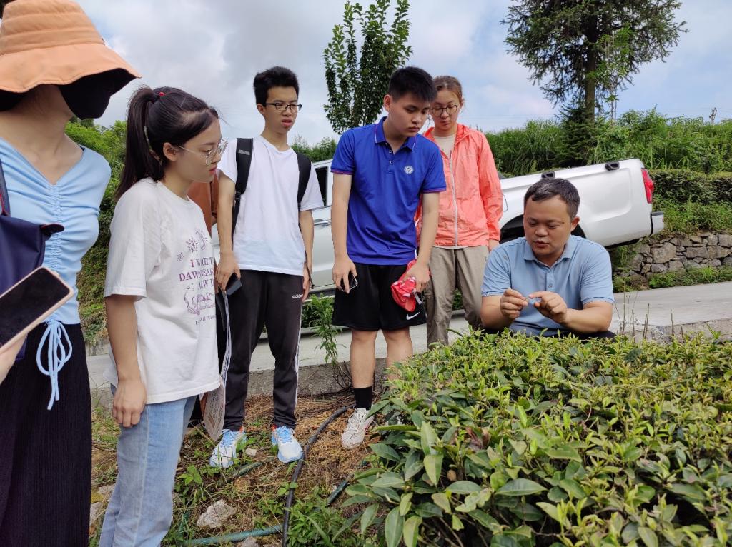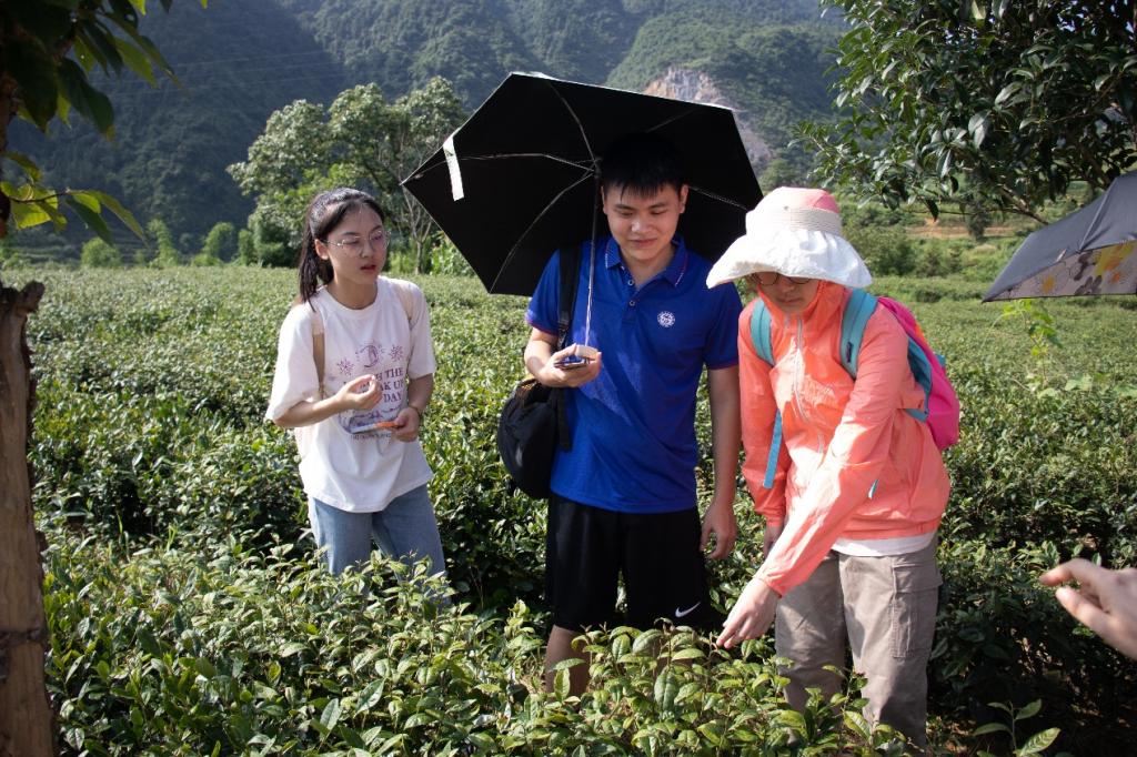7月8日9:30,在李江书记的带领下,实践团队前往了新院村茶叶基地及茶叶厂进行实地参观和调研。云雾飘绕青山间,致富银花漫山开,秀山毛尖芳香溢,听村支书讲解茶叶种植,拜访创业先锋杨益茶叶厂,品一品老树红茶,口齿留香,听一听茶叶介绍,受益匪浅。他们的创业史和奋斗史,让大家不仅体会到党和政府为发展经济所提供的切实举措,还有创新创业的艰辛与不易。团队成员还积极思索利用语言优势,拓展隘口茶叶的国际销售渠道,助力乡村农产品走出国门走向世界。