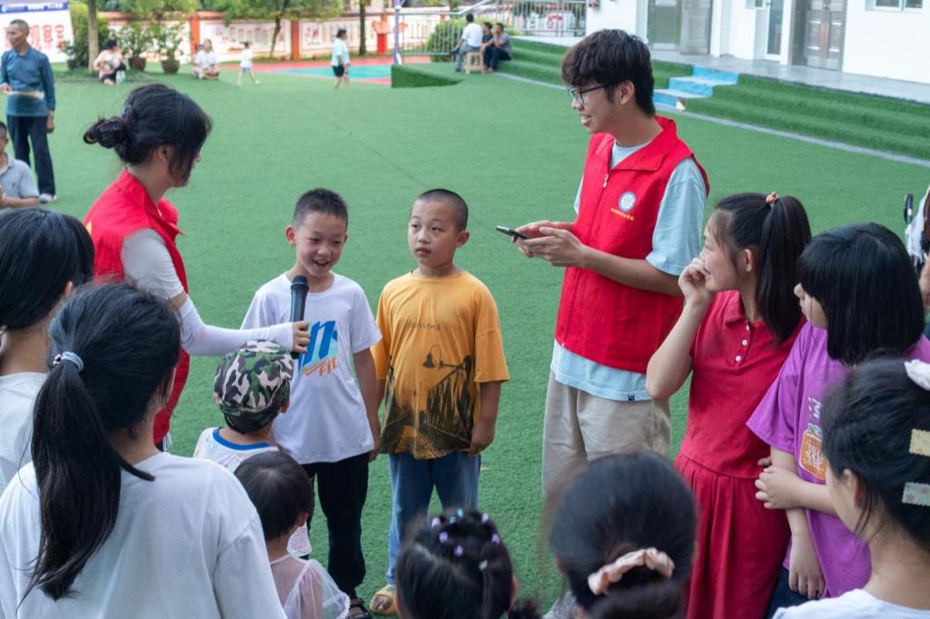 7月6日18:30,“春语计划”全体成员在平所村小学开展了以“关注留守儿童,助力乡村教育”为主题的实践活动,成员们不仅给小朋友们精心准备了礼物,还开展了有趣的游戏,“萝卜蹲、一二三木头人、击鼓传花”,大家玩得不亦乐乎。在游戏奖励环节,小朋友们积极参与,朗诵诗歌、唱歌跳舞,才艺展示数不胜数。快乐的瞬间被镜头捕捉,大学生和小朋友的感情迅速升温。