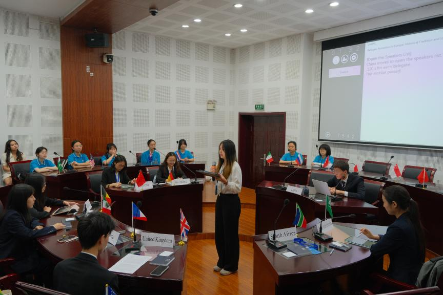 在接下来的时间里,同学们参观了校史馆、校园环境,观摩了国际关系学院模拟联合国演示,聆听了郭兵云老师带来的“当前中美关系”主题讲座并交流互动。活动安排紧凑,内容丰富,形式多样,活动结束后,同学们在学校食堂用餐,感受校园生活。
